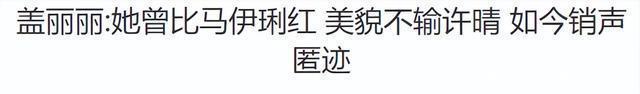 参考资料: 新华网——盖丽丽:她曾比马伊琍红美貌不输许晴如今销声匿迹